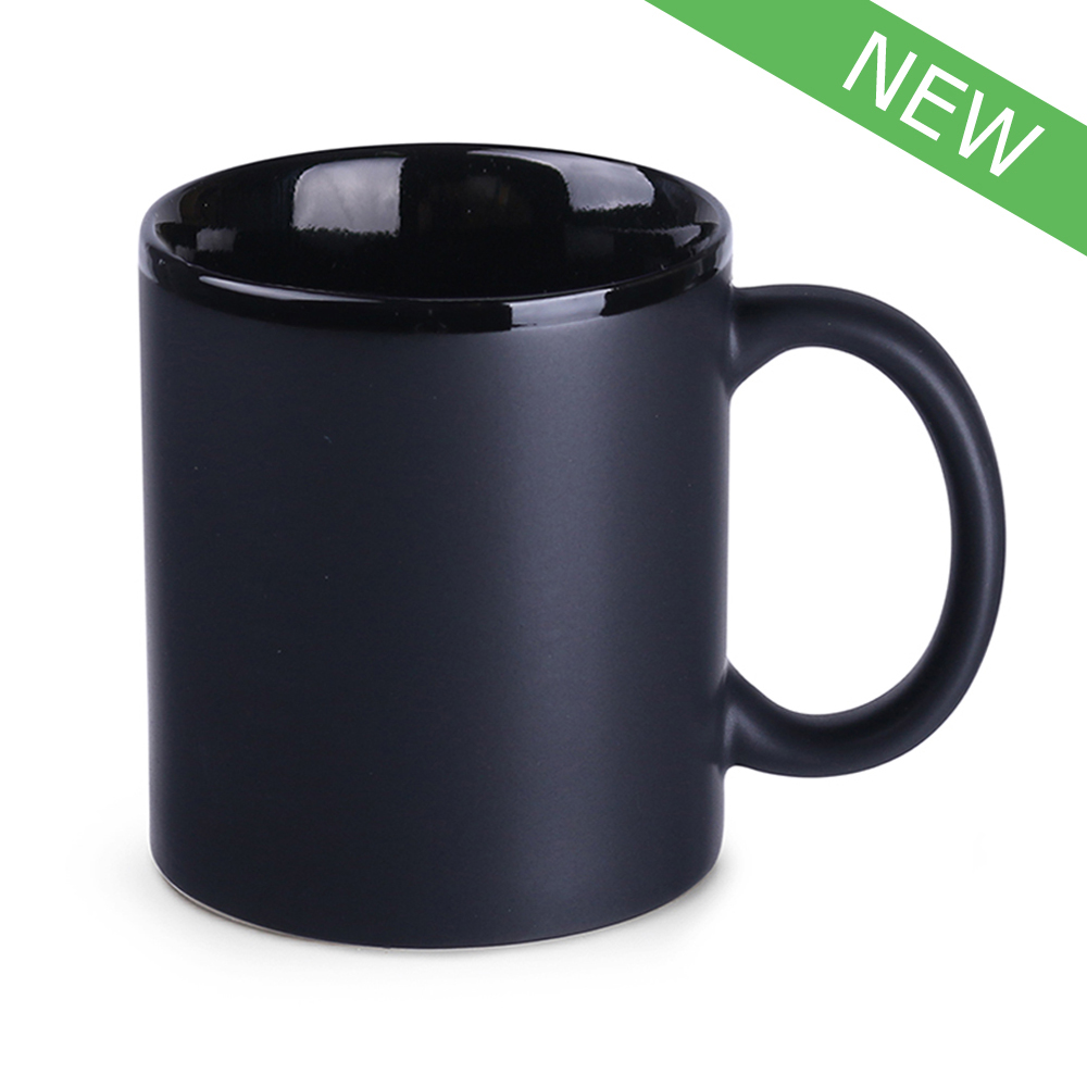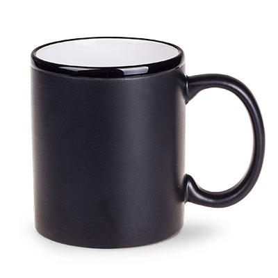 Kubek reklamowy będący połączeniem klasycznego kształtu oraz nowoczesnych technologii satynowego szkliwienia. Efekt nowoczesności dodatkowo pogłębia czarny wybłyszczony rant.