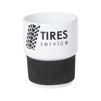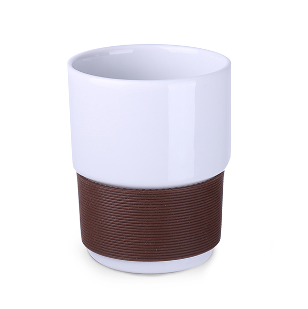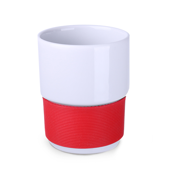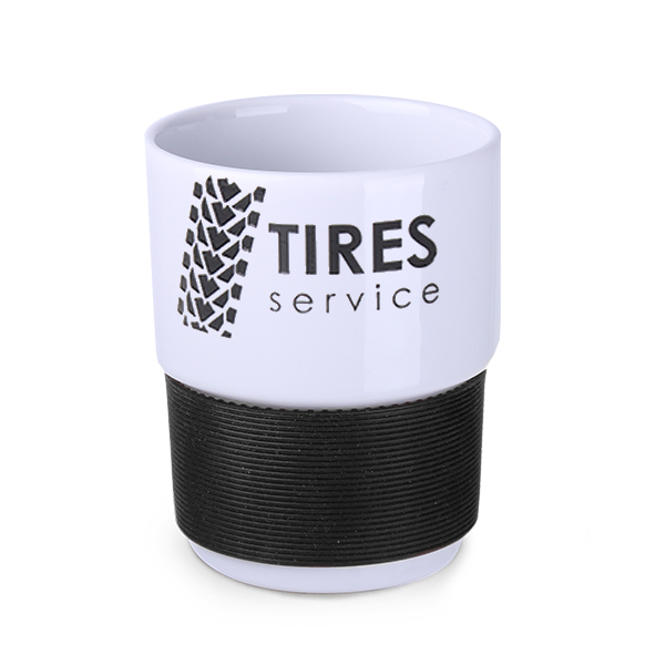 Średniej wielkości, porcelanowy kubek reklamowy bez uchwytu. Opaski o szerokości 40mm dostępne w 7 wersjach kolorystycznych: białej, pomarańczowej, czerwonej, zielonej, granatowej, brązowej i czarnej.