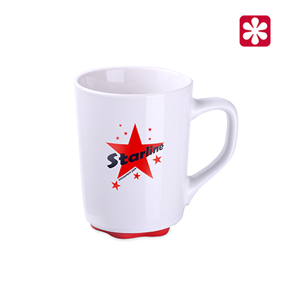 Biały kubek z oryginalnym i ciekawym spodem występującym w 5 kolorach. Proste ścianki dają duże możliwości w zakresie zdobień. Produkt jest końcówką serii, mogą na nim występować nakłucia, kropki oraz różnice w odcieniu szkliwa.