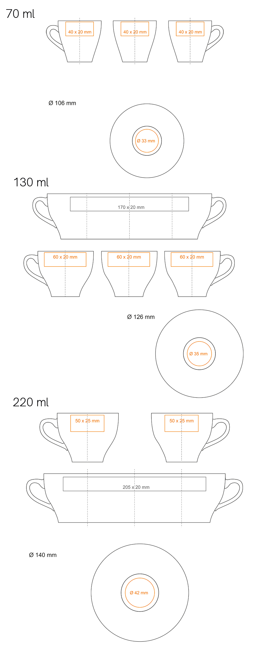 Dostępne zdobienia dodatkowe dla produktu VERONA BIANCO SET: *  (70 / 130 / 220 ml)